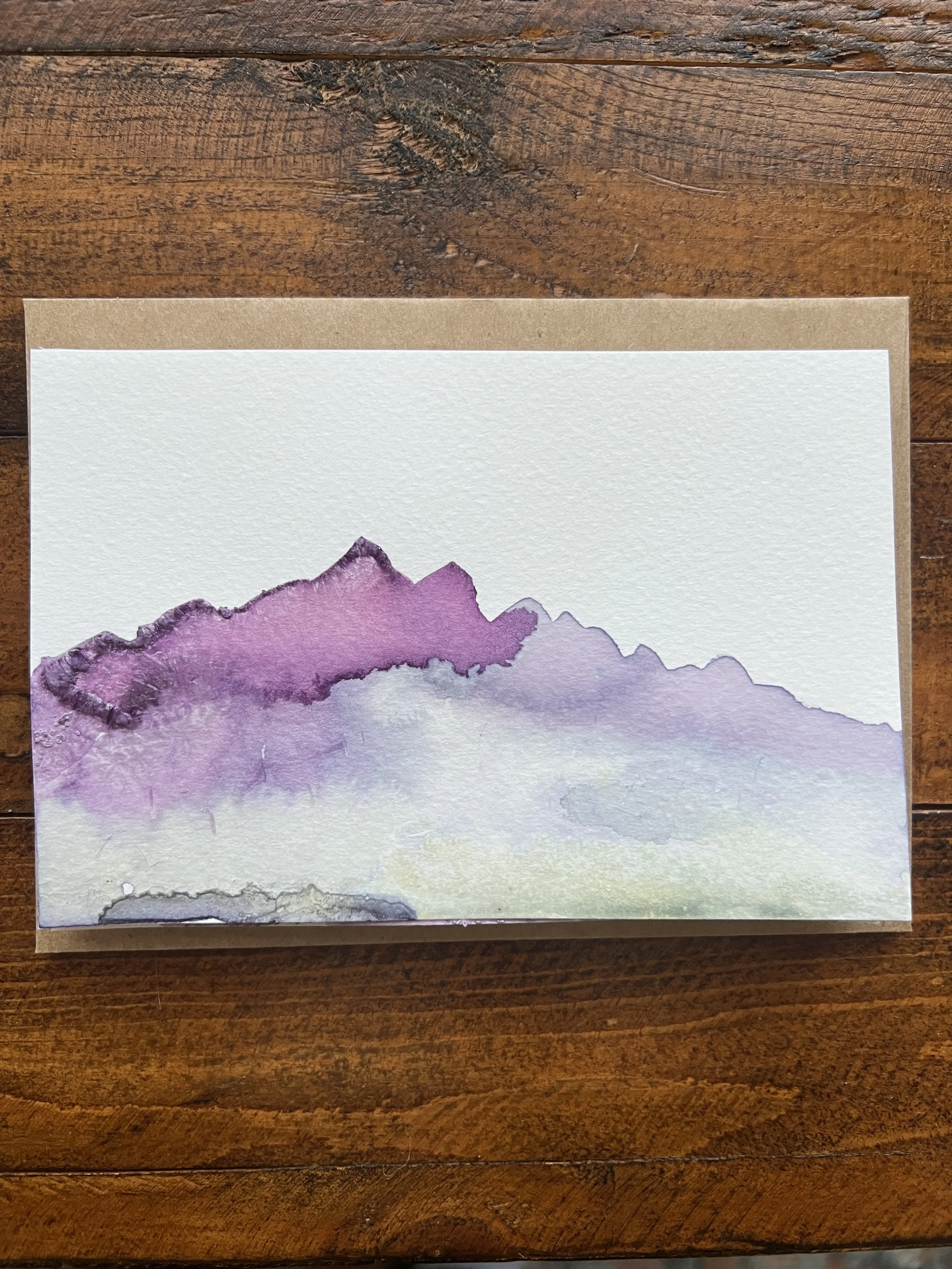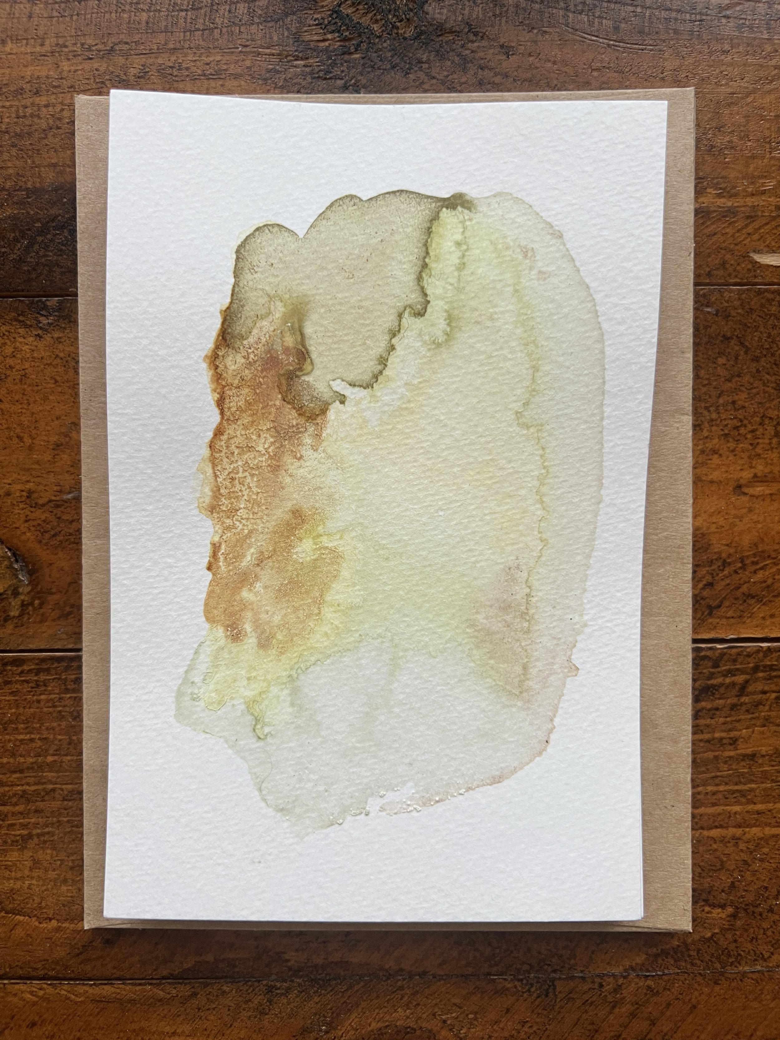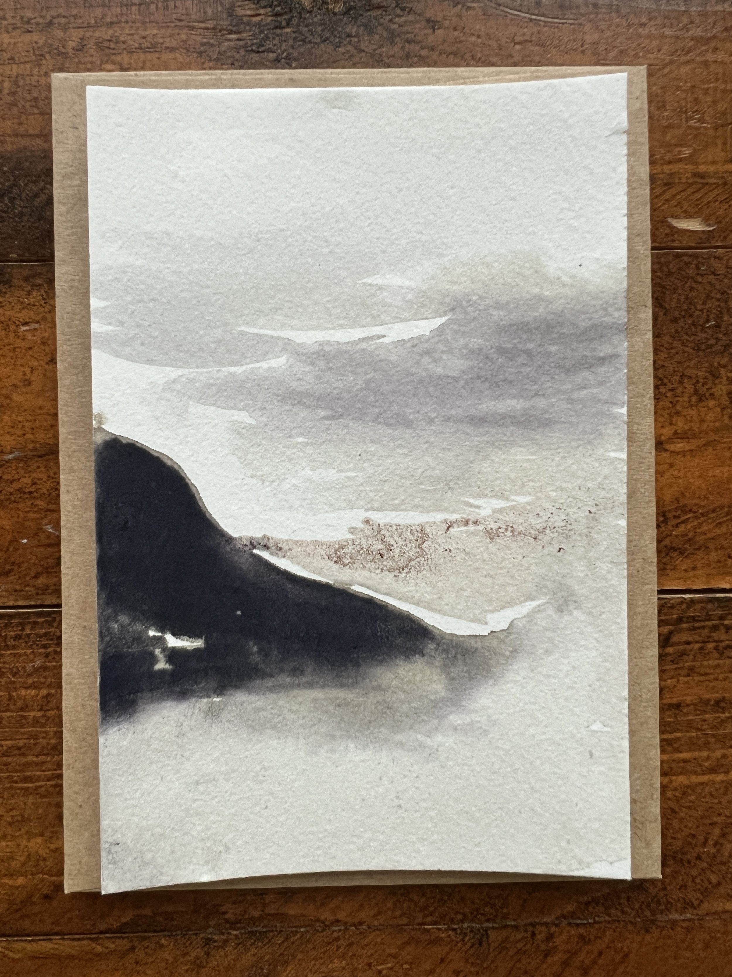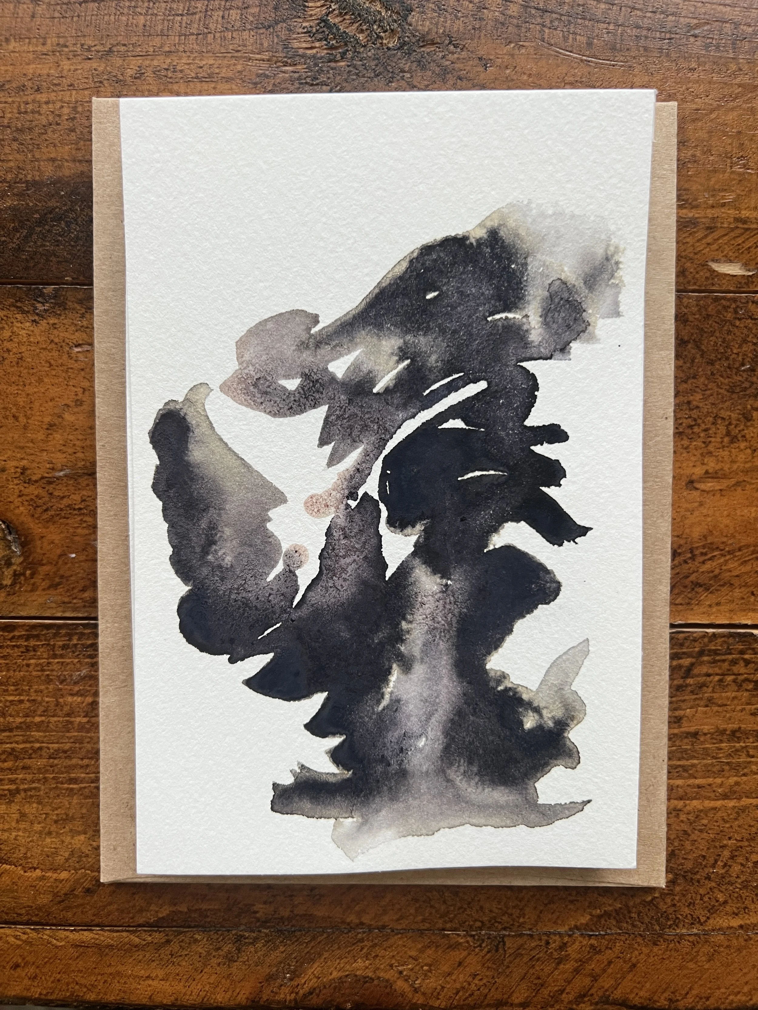 EarthNotes is my series of small abstract expressions and landscapes painted with inks I create from natural materials like berries, tree bark, coal, flower petals, and more. No two are alike. Each card is an original artwork, not a print. Each thematic EarthNotes collection is curated using the cultural and spiritual symbolism of the natural materials used to paint the set.